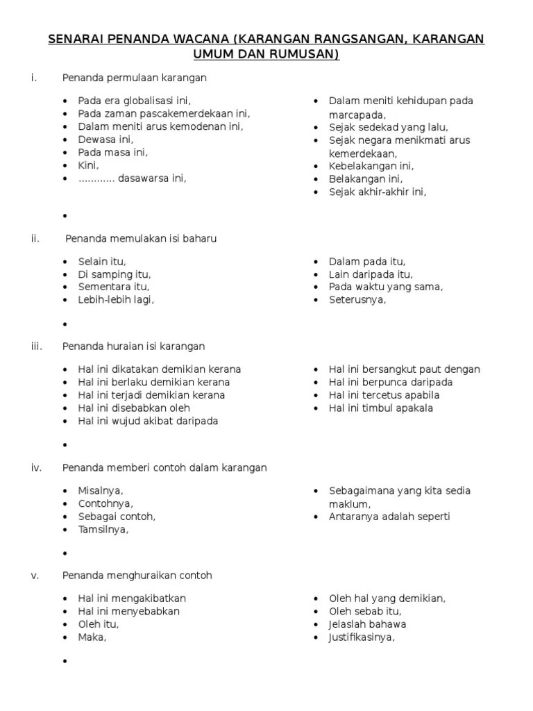Penanda wacana karangan spm a. Text of koleksi penanda wacana dan bahasa gramatis. Penanda wacana untuk memulakan ayat pendahuluan karangan a. Kata seru digunakan untuk membentuk ayat seruan. Vii) penanda wacana untuk menulis dua huraian dalam satu ayat. · sedasarwasa ini sering meniti dari bibir ke bibir umat manusia di segenap empat . Sedasarwasa ini,isu sering meniti dari bibir ke bibir umat manusia di segenap empat penjuru dunia .